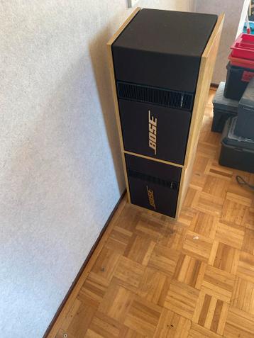 Twee bose 301 luidsprekers, zoals op de foto te zien. Ze zijn zwart met een houten ombouw. De luidsprekers zijn gebruikt.