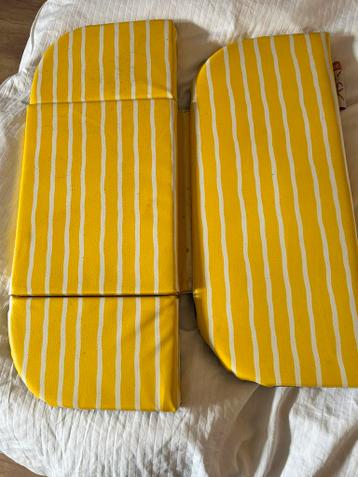 Kussen voor het bankje in de bakfiets. Merk babboe. Kleur geel / wit gestreept