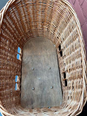 Degelijke rieten fietsmand, ideaal voor het veilig vervoeren van uw kleine hond. De mand is gebruikt, maar verkeert nog in goede staat en is klaar voor een tweede ronde. Perfect voor gezellige fietsto