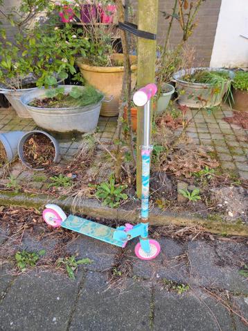 Leuke kinderstep die wat liefde nodig heeft. Het achterwiel loopt aan en er zijn roestplekken aanwezig. Ideaal voor iemand die handig is en de step wil opknappen voor een tweede leven.