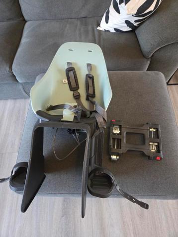 Mint groene iki urban fietsstoeltje voor op de pakkendrager. Er zit een cijferslot bij tegen diefstal. Op de achterkant zitten een aantal krassen. Alleen ophalen.