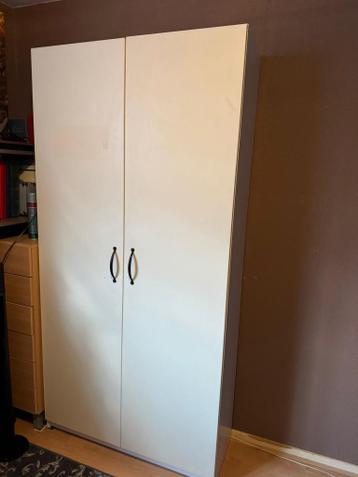 Kledingkast wit met uitschuifbare hangrails. Maten 202cm hoog, 100cm breed, 47cm diep. Is nog prima. Heeft gebruikerssporen.
