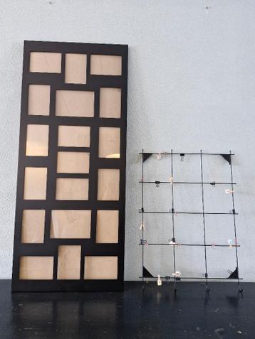 Grote fotolijst voor 19 fotootjes. Horizontaal en verticaal op te hangen. En leuk foto/kaartenrekje met knijpertjes gebrikt maar nog in nette staat