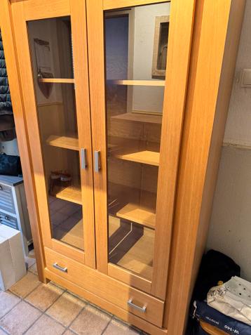 Mooie degelijke vitrinekast met schappen en een lade, nette kast!! Gratis af te halen!