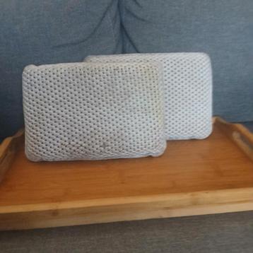 Gebruikt in fietsmand als hondenkussen. Zijn goed afgespoeld. Wie kan ze (her) gebruiken?