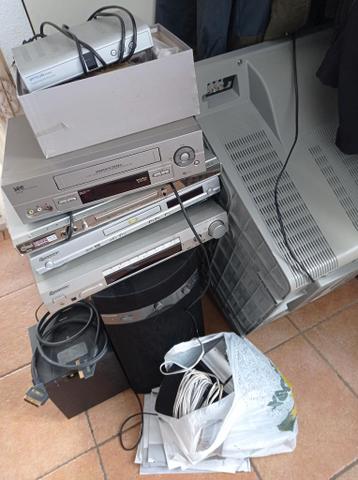 Gratis werkende tv, jvc, video en cd player, geluidsapparatuur pioneer. Alles in een.