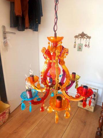 Twee kroonluchters, een kleurrijke en een zwarte. Ze zijn gratis af te halen. De kleurrijke kroonluchter heeft verschillende kleuren en de zwarte is effen zwart. Beide zijn geschikt voor een meisjes-