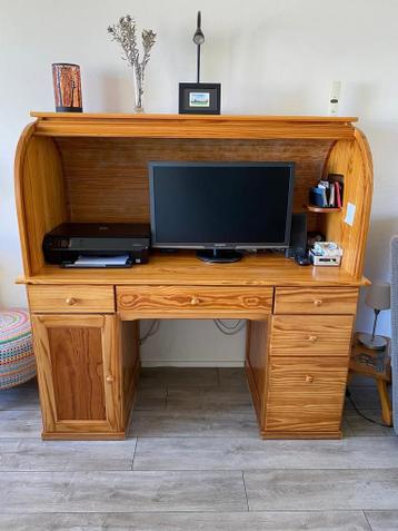 Gratis af te halen! Computermeubel zonder inhoud. Rolklep kan helemaal dicht. Inclusief de onderkastjes en uitschuifbare toetsenbord plank. Breedte 140 cm en diepte 77 cm