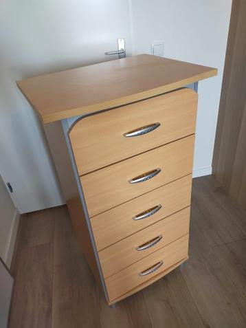 Handige ladekast gratis op te halen. De kast heeft een lichte houtkleur een biedt veel opbergruimte middels 5 laden. De kast is gebruikt maar doet het nog helemaal prima. Er zit een kras bovenop (foto