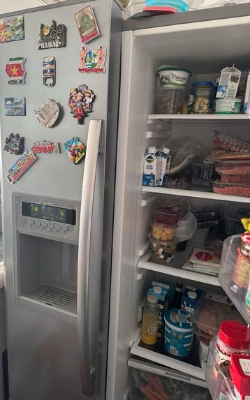 Deze amerikaanse koelkast werkt nog goed. Hij is wel wat ouder en de bakjes binnenin zijn kapot. De koelkast werkt 100% en de ijsblokjesmachine werkt ook als hij is aangesloten op de kraan, zoals op d
