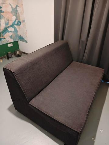 Grote u bank in donkergrijze stof. De bank bestaat uit meerdere delen die je aan elkaar kunt zetten. Het zijn de volgende delen: 1 chaise lounge 1 hoekstuk 2 kleine lange stukken (1 ontbreekt op de fo