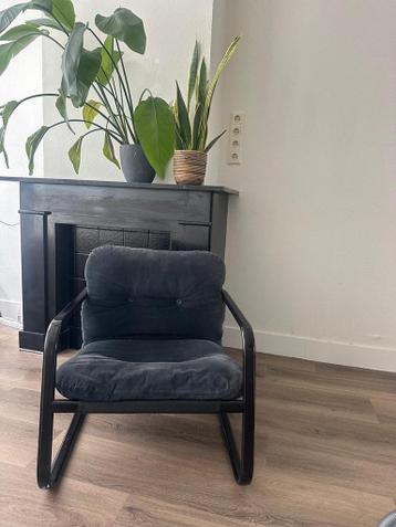 Comfortabele blauwe stoel met een stevig metalen frame en zachte ribstof kussens. Ideaal als extra zitplek in de woonkamer of slaapkamer. De stoel is gebruikt, maar in goede staat. Ophalen is mogelijk