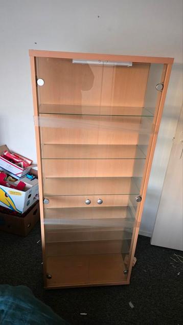 Mooie vitrinekast met glazen planken en deuren, ideaal voor het tentoonstellen van verzamelingen of decoratie. De kast is in goede staat en gratis af te halen in waalwijk. 65 Breed 30 diep hoog 162