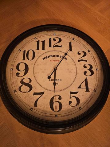 Dit is een retro uitziende klok. Op de wijzerplaat staat kensington station london. De klok heeft een diameter van ongeveer 60 cm.