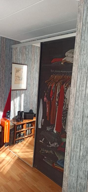 Ruime zwarte ikea kledingkast met een handige spiegel schuifdeur. Ideaal voor het opbergen van al uw kleding en accessoires. De kast is in goede staat en biedt veel opbergruimte. Afmetingen: 146x58x20