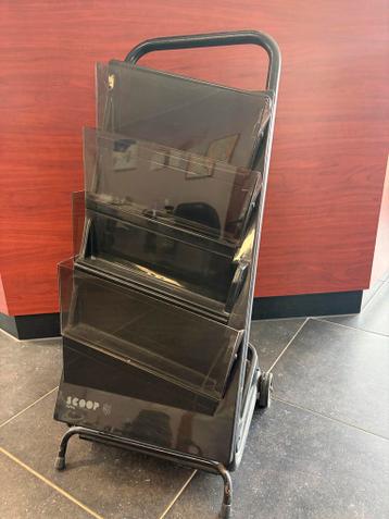 Handig verrijdbaar folderrek van het merk scoop, ideaal voor het presenteren van brochures, tijdschriften of ander promotiemateriaal. Het rek heeft meerdere vakken en is gemakkelijk te verplaatsen dan