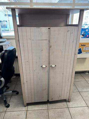 Deze kast is 105 cm breed, 272 cm hoog en 60 cm diep. Binnenin zit een hangroede en een spiegel aan de binnenzijde van de rechterdeur. De kast heeft twee deuren en een open vak bovenaan.zsm ophalen.