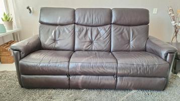 Deze leren 3-zitsbank is in uitstekende staat. De bank heeft een donkerbruine kleur en is gemaakt van leer. De bank heeft drie zitplaatsen.