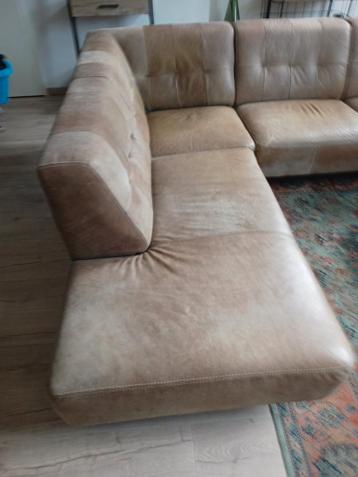 Leren hoekbank. Afmetingen 2.70 X 2.30 X 0.90. Kan nog makkelijk een ronde mee. Wegens aanschaf nieuwe meubels.