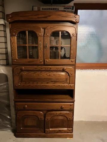 Eikenkast met sfeer verlichting. Deze kast is gratis af te halen. Het is nog in een goede staat. Er zit sfeer verlichting op de kast.