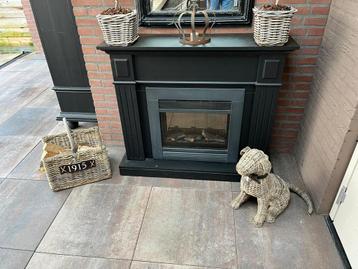 Deze sfeerhaard werkt en is zwart van kleur. De haard moet wel opnieuw geschilderd worden. De haard is vrijstaand.