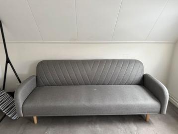 Grijze slaapbank met houten poten, zo goed als nieuw. Moet vandaag weg!!!! Ophalen in zeist! Zelf gereedschap meenemen!
