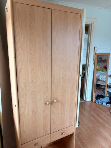 De kast heeft twee deuren en twee handige lades aan de onderkant. Binnenin vind je meerdere planken voor georganiseerde opslag. 194X72x35 cm