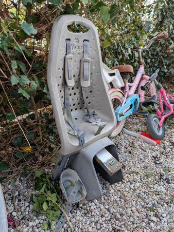 Yepp achterzitje. Veel buiten gestaan zoals te zien. Gratis ophalen, zelf schoonmaken ;) (groene aanslag) je hebt nog iets nodig voor bevestiging, dat deel was helaas niet meer in goede staat.