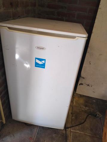 Deze exquisit mini koelkast is goedwerkend. Het is een compact model, ideaal voor kleinere ruimtes. De koelkast is wit van kleur en heeft een sticker op de voorkant.
