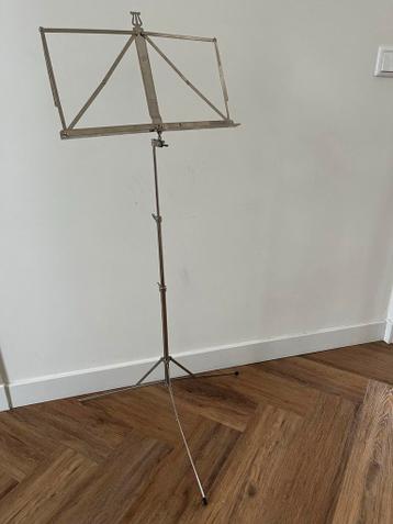 Gebruikte muziekstandaard. De standaard is nog prima te gebruiken, maar het onderste gedeelte is niet meer inklapbaar en zit vast met een schroef. Verder in goede staat.