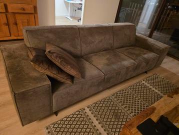 Deze bank van het merk montel heeft een klein gaatje van een sigaret. De bank is verder nog goed 2 jaar oud en kan prima een ronde mee. De kleur is bruin/grijs. Afmetingen: 90 x 270 x 80 hoog let op o