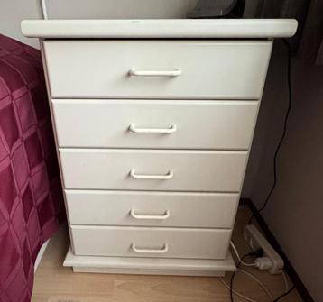 Dit is een wit ladekastje met vijf laden. Het kastje heeft een simpele uitstraling en past in veel verschillende kamers. De handgrepen zijn ook wit.