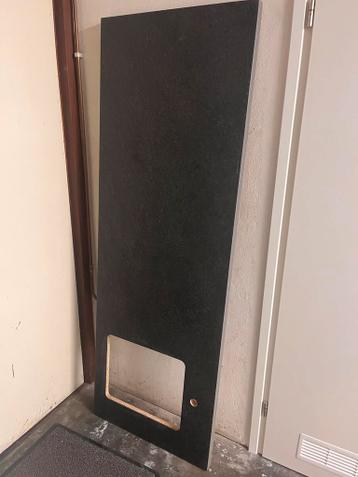Ikea keukenblad, afmeting zie tekening. Type säljan donkergrijs steenpatroon er zit een uitsparing in voor een spoelbak vresjön 37x44. En een gat voor een kraan.