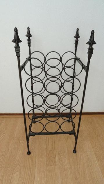 Gratis af te halen klassiek metalen wijnrek, afmetingen zijn 34 (breed) x 34 (diep) x 77 (hoog) cm