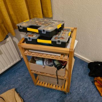 In ruil voor een zak sinaasappels af te halen: handig kastje op wieltjes. Afm. Bxdxh: 33x47x75
