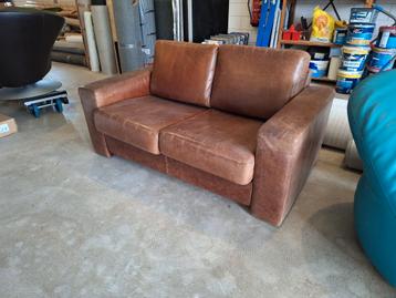 Lekker doorleefde tweezitter, cognac leder, niet kapot,wel doorleefd,zit nog goed,losse kussens