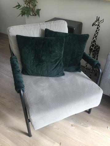 Aangeboden: grijze stoel met zwarte pootjes. Merk zuiver. Breedte 66 cm. Hoogte zitting 42 cm. Hoogte leuning 75 cm. Gratis op te halen een plant voor in de tuin is welkom. Let op!! Zonder de groene k