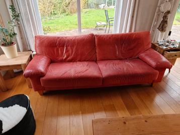 Rode leren bank, 230 breed, 100 diep en 80 hoog. De rugleuning is verstelbaar. Moet zaterdag 28 maart weg.