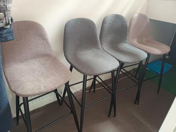 Deze 4 barkrukken zijn gebruikt en komen uit een huis met dieren. Hierdoor hebben ze wat haakjes en vlekjes in de stof. Ze zitten echt heel fijn.