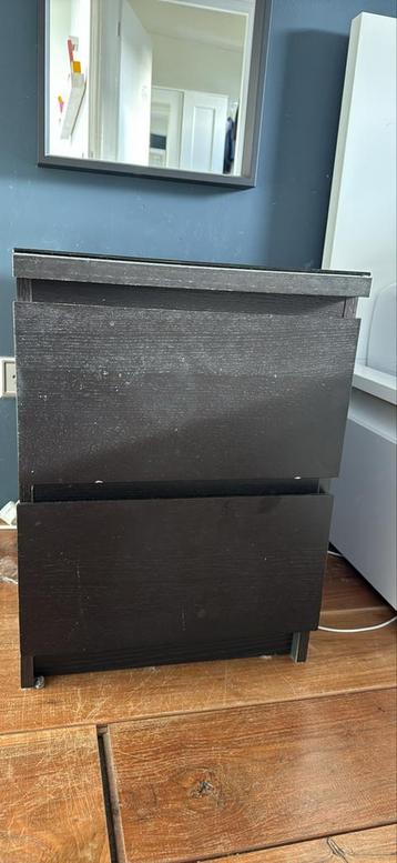 Malm nachtkastje van ikea, voorzien van een nette glasplaat. Het nachtkastje is gebruikt, maar kan zeker nog een ronde mee. Gratis af te halen.