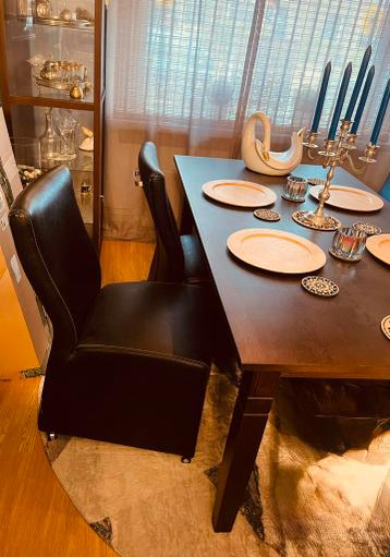 Ik heb vier nog mooie zwart leder look eetstoelen die ik gratis wil weggeven. Ze zijn nog in goede staat, maar ik heb er zelf geen ruimte meer voor en gebruik ze niet. De stoelen mogen gratis worden o