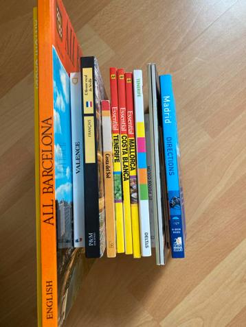 Een verzameling van diverse reisgidsen voor populaire spaanse bestemmingen, waaronder barcelona, valencia, madrid, mallorca, costa blanca, costa del sol en tenerife. Ideaal voor het plannen van uw vol