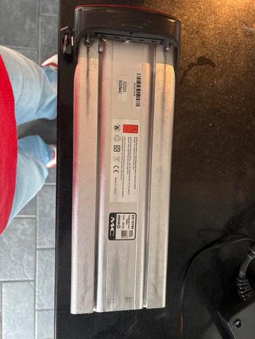 Een gebruikte panasonic li-ion accu voor e-bikes, model 7s5p met een capaciteit van 284wh. Deze accu is van het merk move mc en voldoet aan de en 15194 norm. Fiets is stuk, maar denk dat de accu nog w