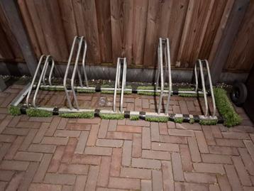 Stevig fietsenrek voor het stallen van meerdere fietsen. Ideaal voor thuis, op het werk of bij een vereniging. Het rek is in gebruikte staat, maar functioneert nog prima. Biedt ruimte voor 5 fietsen.