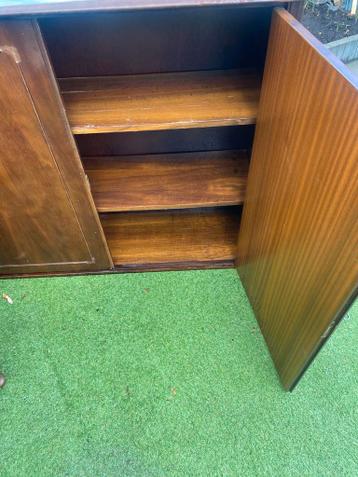 Mooie tweedelige kast, ideaal voor opslag of als decoratief meubelstuk. De kast is 165 cm hoog, 130 cm lang en 46 cm breed. Gratis af te halen
