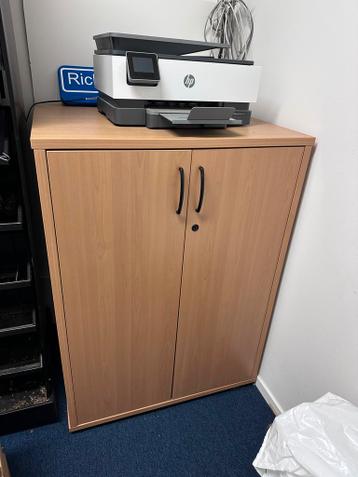 Stevige kantoorkast met de afmetingen 80 cm breed, 110 cm hoog en 65 cm diep. Ideaal voor het opbergen van documenten en kantoorbenodigdheden. De kast is gebruikt, maar in goede staat en kan nog prima