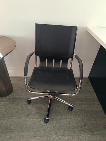 Bureaustoel zwart met licht metalen onderstel zitting 59 cm diep, 57 cm breed, en 99 cm hoog