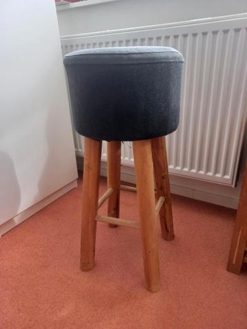 Diameter 30 cm hoogte 68 cm grijze denim bekleding onderstel van teakhout bijdrage spaarpotten wordt gewaardeerd