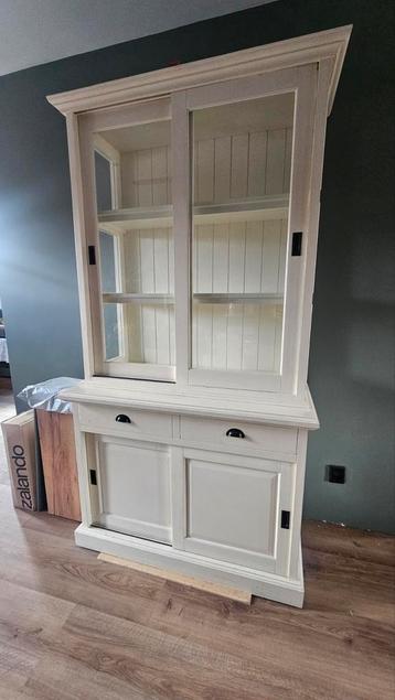 Crèmekleurige vitrinekast schuifdeuren gratis ophalen zsm