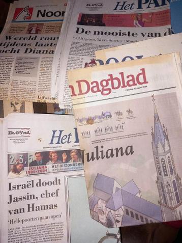 Enkele kranten mbt koningshuis:(ad,parool etc)1999,2003,2004,2013 overlijden bernhard en juliana etc en over geboorte amalia over diana
